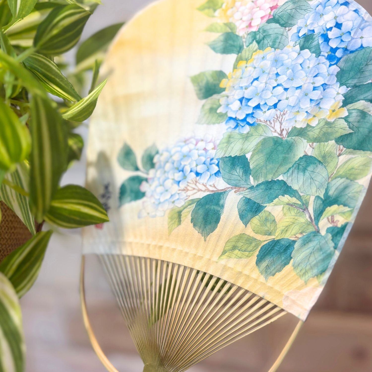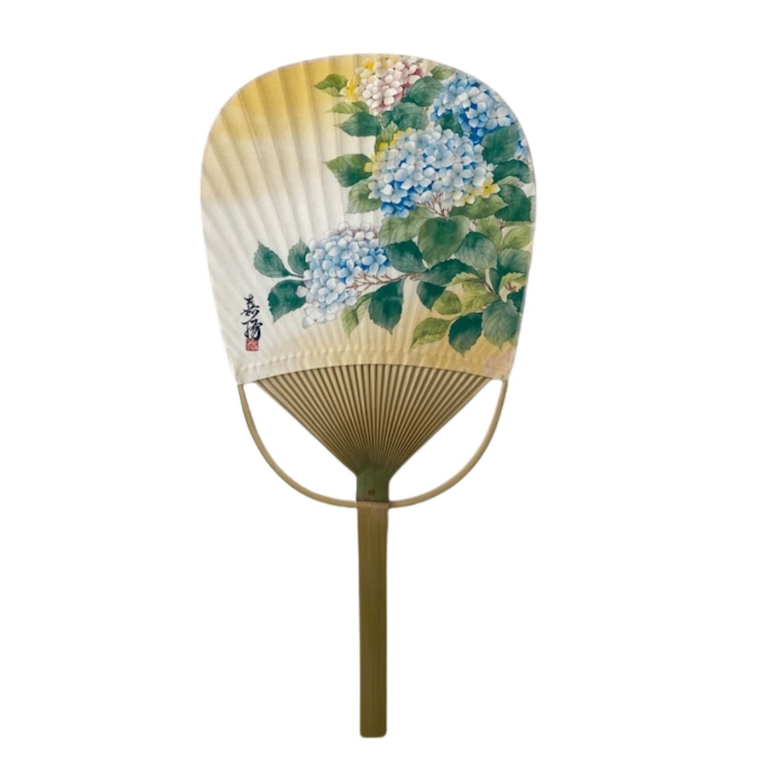 MU173 丸亀うちわ 花うちわ 紫陽花「片桐嘉正( 雅号 嘉陽)作画」Marugame Uchiwa Fan Flower Uchiwa Fan Hydrangea ‘Illustrated by Katagiri Yoshimasa